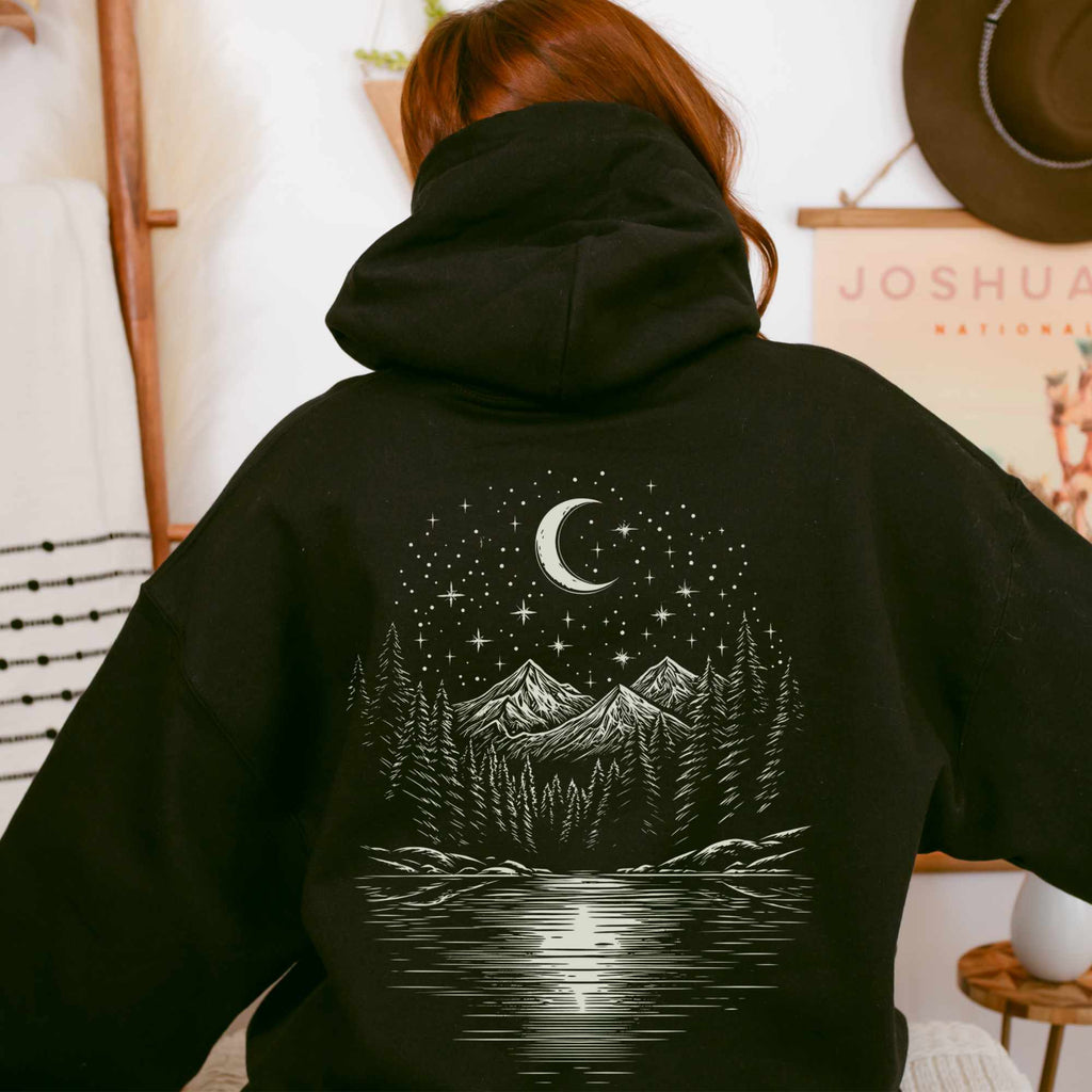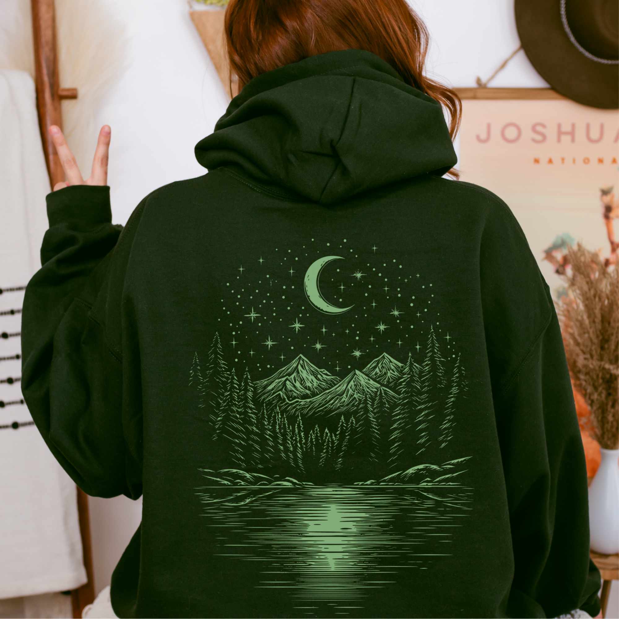 Immerse yourself in nature-inspired comfort with this Celestial Woodland Forest Hoodie. Crafted from premium soft fabric, this piece seamlessly blends celestial and forest aesthetics for a unique visual statement. The relaxed fit provides everyday wearability, while the hood offers practical protection from the elements. Perfect for nature enthusiasts who appreciate thoughtful design, this hoodie transitions effortlessly from casual outings to cozy evenings. An ideal choice for those seeking meaningful apparel that reflects their connection to the natural world.
