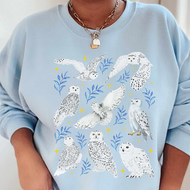 ♥Snowy Owl Sweatshirt Crafted from premium cotton-blend fabric, this sweatshirt features a striking snowy owl design that captures the majestic beauty of these arctic predators. The detailed artwork showcases the owl's distinctive white plumage and piercing gaze, making it an ideal choice for wildlife enthusiasts and nature lovers. The relaxed fit provides all-day comfort, while the durable construction ensures lasting wear through countless washes. Perfect for layering during cooler months or wearing solo for casual outings.