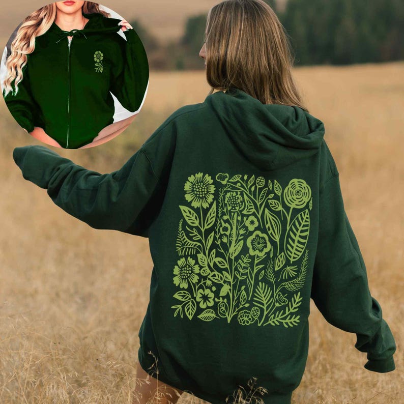 Green Wildflower Zip Up Hoodie