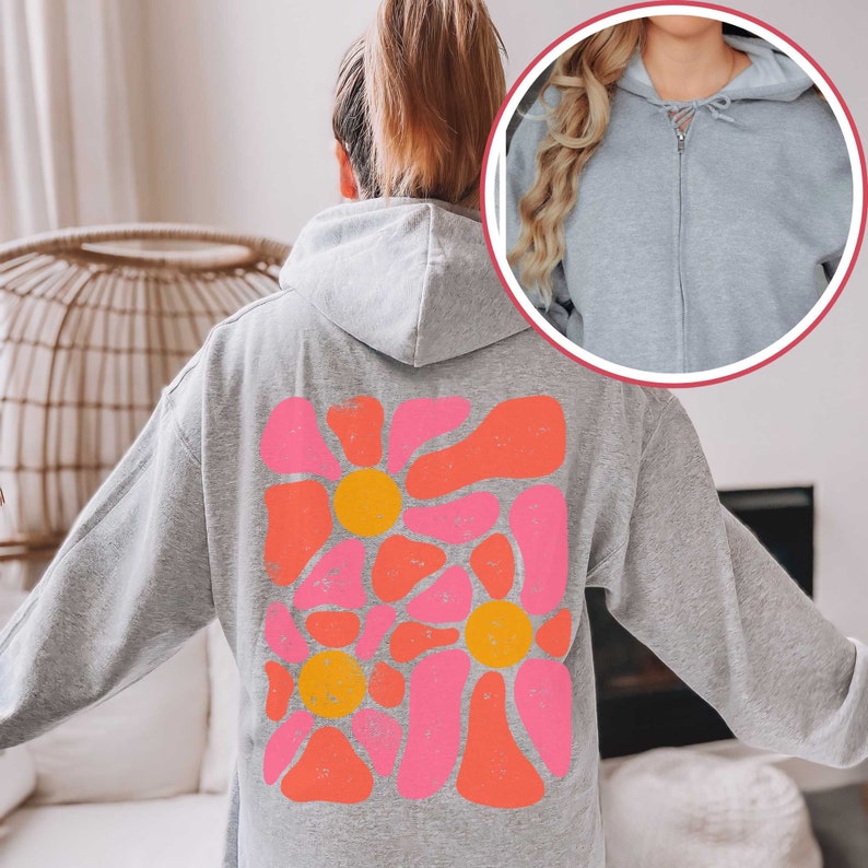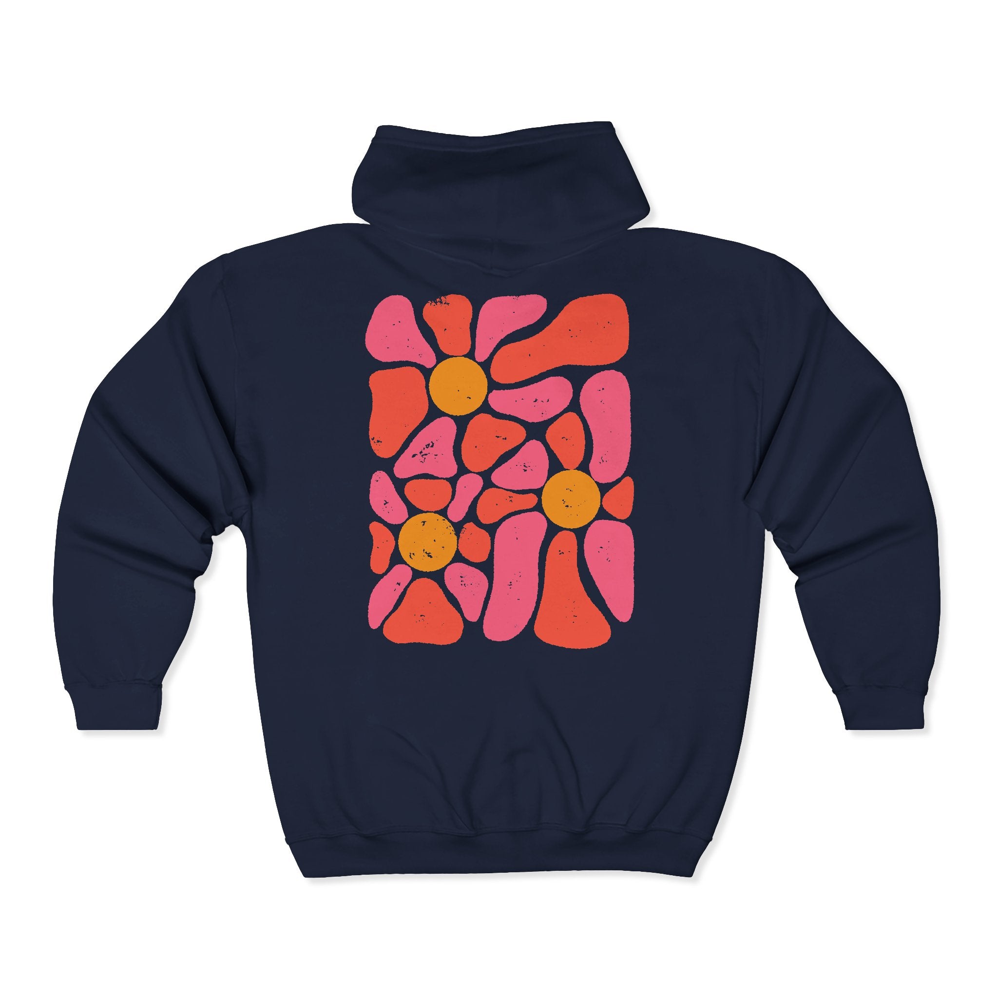 ♥ Embrace retro vibes with this Groovy Flower Zip Up Hoodie, where bold botanical patterns meet modern comfort. The smooth zip-up design offers effortless layering for any season, while the soft fabric keeps you cozy whether you're running errands or relaxing at home. Perfect for expressing your unique style with a touch of vintage flair. Make a statement that's both comfortable and undeniably cool.