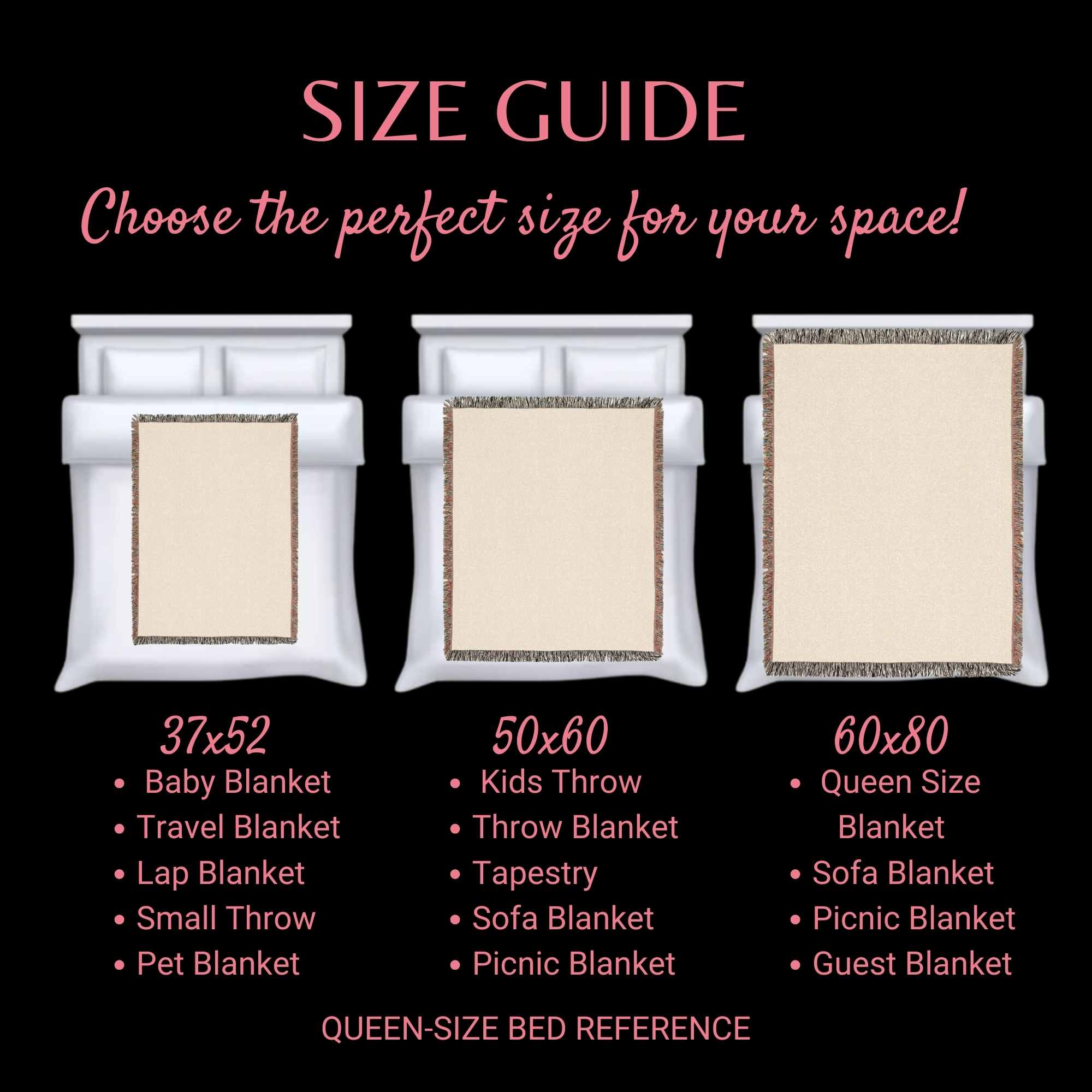 ♥ Available in three cozy sizes—our 80" x 60" option is ideal for sofas, beds, or your favorite reading spot.
