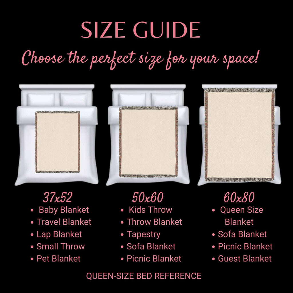 ♥ Our cozy woven blankets are lasting, quality heirlooms. These products are crafted from 100% cotton yarn for a soft, warm, and luxurious feel. Put them up on the wall for a cozy display or use it to cuddle up on your couch. These cozy throw-sized woven blankets have a colorful edge fringe that extends the image.