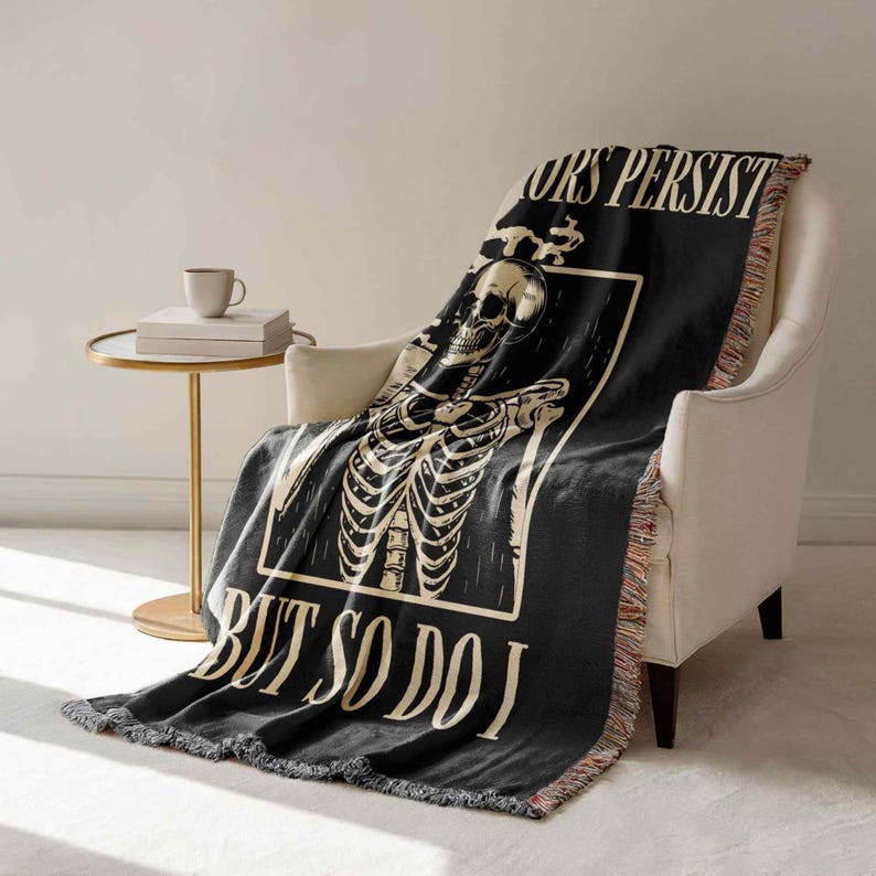 Embrace resilience with The Horrors Persist But So Do I Woven Blanket. Crafted for both comfort and durability, this woven blanket offers a cozy, textured feel that enhances any living space. Its inspiring message serves as a daily reminder of strength in adversity, making it an ideal addition to your home or a thoughtful gift. Designed to blend style with lasting warmth, this blanket supports you through challenging moments while elevating your décor with subtle sophistication.